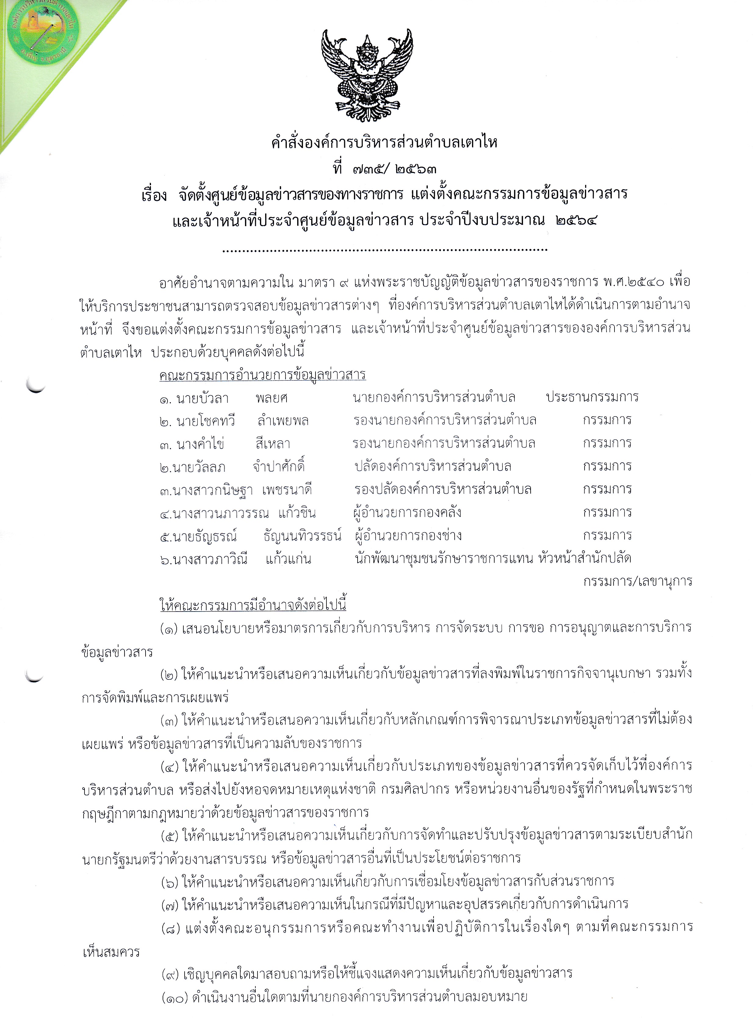 จัดตั้งศูนย์ข้อมูลข่าวสาร ประจำปีงบประมาณ ๒๕๖๔