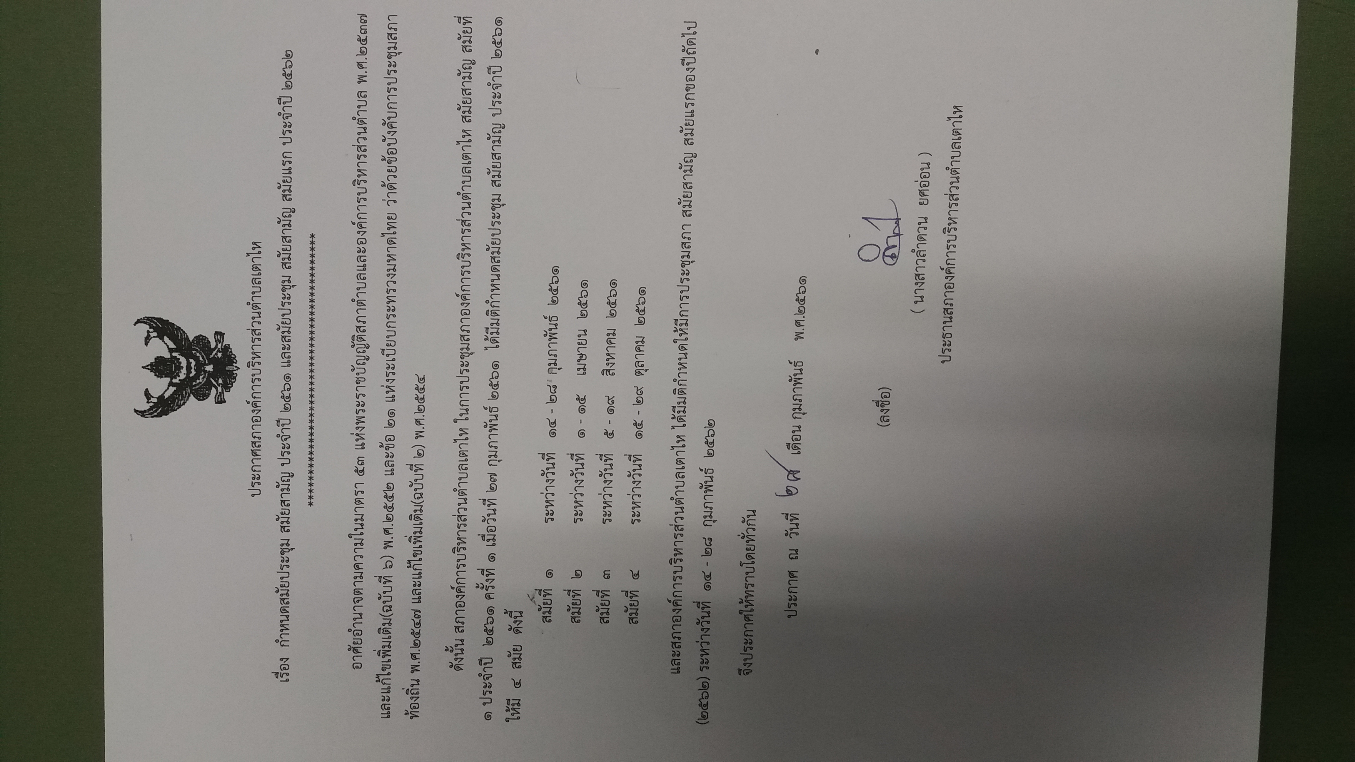ประกาศ เรื่อง กำหนดสมัยประชุม สมัยสามัญ ประจำปี 2561 และสมัยประชุม สมัยสามัญ สมัยแรก ประจำปี 2562