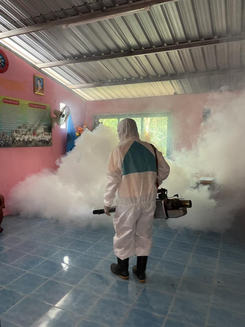 ฉีดพ่นหมอกควัน เพื่อป้องกันโรคติดต่อที่มียุงลายเป็นพาหะนำโรคไข้เลือดออก